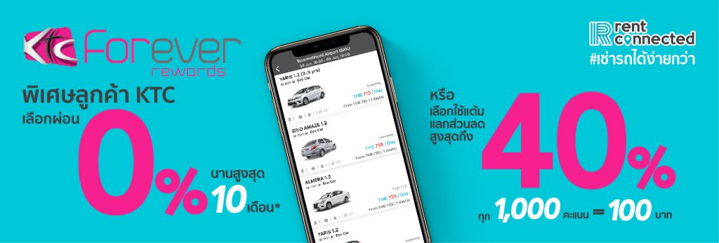 บัตร KTC ให้คุณ ได้เช่ารถสบายกระเป๋า ผ่อนค่าเช่ารถสูงสุด 10 เดือน หรือ แลกแต้มสูงสุด 40%