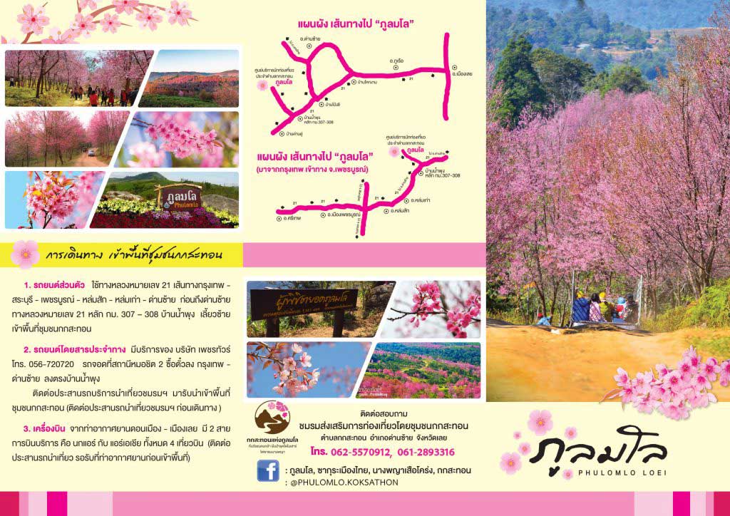 เส้นทางที่ 2 : จากจังหวัดเลย ไปทางอำเภอด่านซ้าย เข้าสู่หมู่บ้านกกสะทอน 110 กม.และจากที่ทำการตำบลกกสะทอน ผ่านบ้านตูบค้อ-ยอดภูลมโล ระยะทางประมาณ 27 กม.